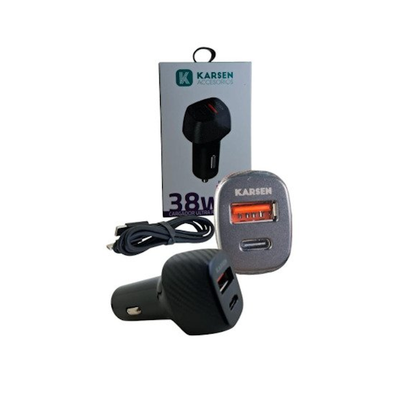 Cargador para Auto KARSEN - TIPO C + USB C/CABLE TIPO C A TIPO C 38W